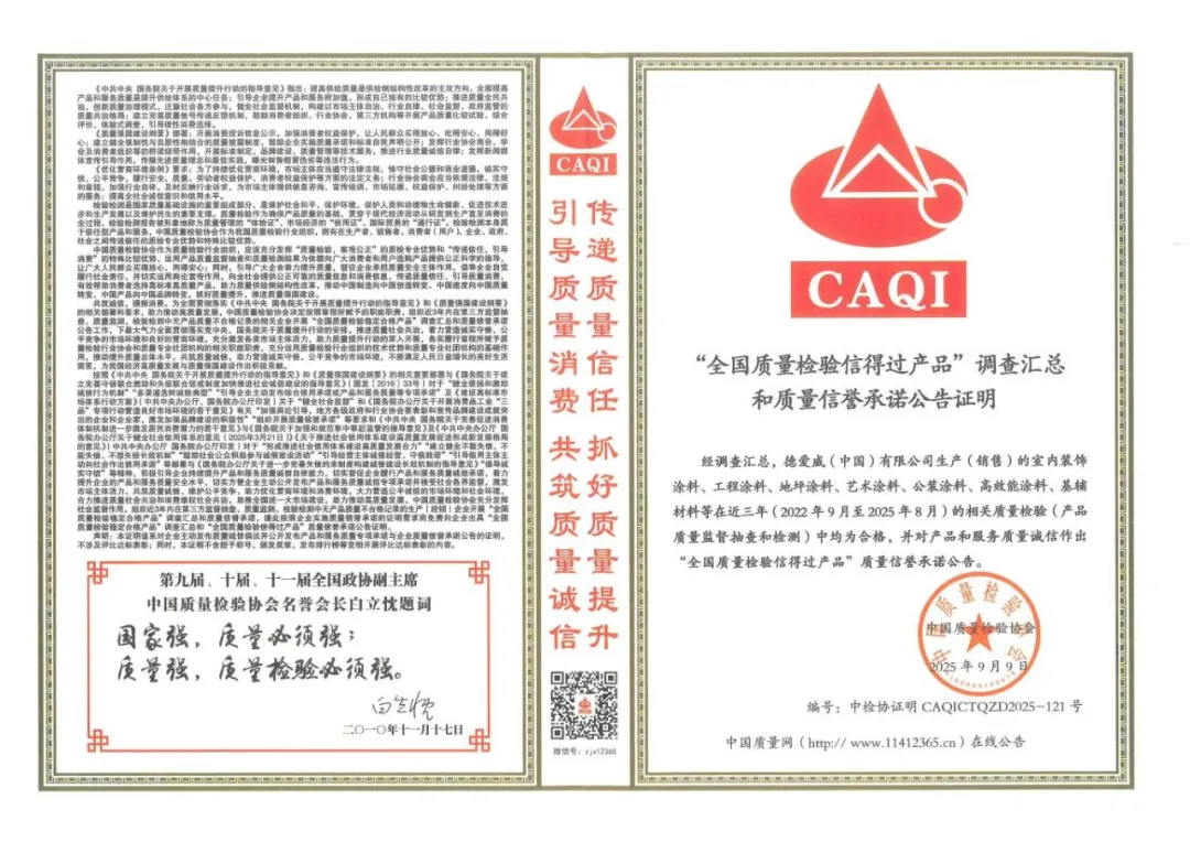 近日,在2025年全国“质量月”活动中,德爱威(中国)有限公司凭借其卓越的产品质量与可靠的服务体系,成功摘得“全国产品和服务质量诚信品牌”“全国质量检验信得过产品”“全国行业质量领先企业”“全国行业质量领先品牌”“全国质量诚信先进企业”五项国家级质量荣誉。 该评选结果由中国质量检验协会等权威单位联合颁布。这一系列奖项不仅代表了国家机构与市场消费者对德爱威产品与管理体系的高度认可,更标志着这家传承130年德系基因的企业,正以扎实行动诠释“匠心品质创造价值”的当代内涵。 中国质量检验协会 中国质量检验协会作为国家市场监督管理总局直属的全国产品质量监督检验领域唯一国家级质量专业机构,已连续20余年开展“产品和服务质量诚信承诺”主题活动,致力于传递质量信任、引导质量消费,以切实维护消费者合法权益。此次荣誉的获得是国家质量部门对德爱威品牌形象、产品品质、服务口碑的高度认可。 德国制造素以“严谨”与“工匠精神”闻名世界。作为源自德国五代化工博士家族的企业,德爱威始终将技术与创新视作品质升级的核心驱动力。从发明“乳液水分散技术”、开创水性涂料新纪元,到推出全球首款趋零VOC内墙涂料,再到基于玉米、甜菜等可再生原料的生物基产品——在130年的发展进程中持续推动行业技术变革,为涂料行业的高质量发展提供德爱威解决方案。 自2017年正式进入中国市场以来,德爱威先后于浙江杭州、湖南岳阳、河北保定等地建设现代化绿色研发生产基地,将德国百年工艺深度融入产品生产体系,以科技实力夯实品质根基。 德爱威始终坚持“以质取胜”的德系传统,在消费者“看不见的地方”构建了远超行业标准的质量管控机制,从原料筛选到生产工艺实行全程严苛品控,尤其在关乎用户健康的关键指标上绝不妥协。 每一款推向市场的产品均须通过严格的内部检测与权威第三方验证,全面遵循德国蓝天使、法国A+、德国E.L.F.以及FREI VON等欧洲顶级环保认证标准,各项性能指标均优于行业平均水平。德爱威全系产品率先通过中国3C认证,确保无毒无害、绿色环保,让用户在享受涂装美感的同时,享有全面的健康保障。 德爱威深知,优质涂料产品需与专业服务体系相结合。基于对消费者高度负责的态度,品牌将纯正德式施工工艺与科学色彩解决方案引入中国,为客户提供从色彩设计到施工指导的一站式涂装服务,真正实现从“产品交付”到“效果交付”的跨越。 从百年德系工艺到本土化创新实践,从国际权威认证到用户口碑积累,德爱威不断以荣誉证明:品质是产品的根基,更是企业对社会责任的践行。它不仅在续写德国匠心的辉煌,更在中国市场树立了质量标杆的新高度。 未来,德爱威将继续以技术为引擎、以品质为基石、以服务为纽带,为中国家庭打造更多健康、环保、美好的理想居住空间! |