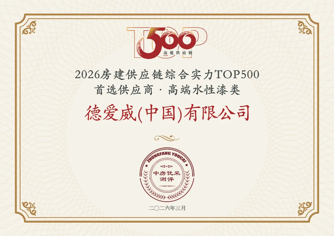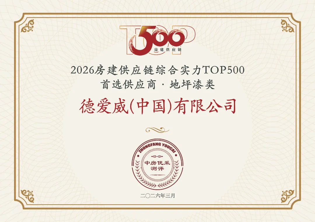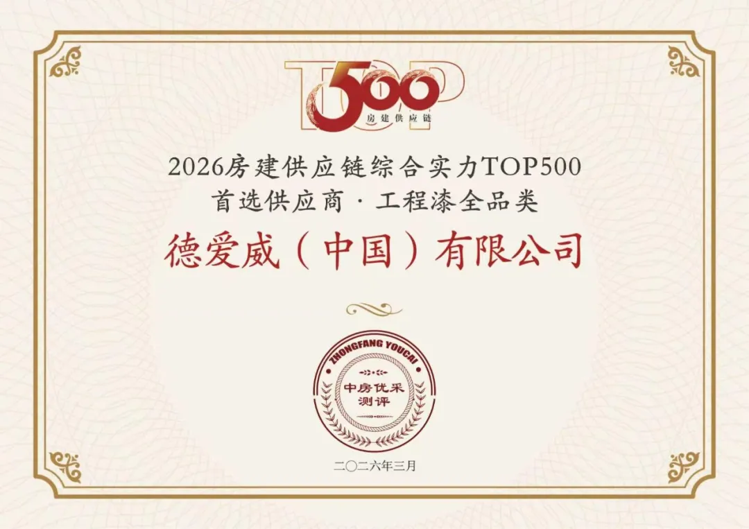3月18日,在北京隆重召开的“新深耕时代——2026中国房地产TOP500房建供应链首选品牌研究成果发布会暨房地产发展高峰论坛”上,备受业界关注的《2026房建供应链企业综合实力TOP500-首选供应商服务商品牌研究成果报告》正式发布。 持续领跑,德爱威以实力铸就荣耀丰碑 在历年严苛测评中,德爱威凭借稳健的经营、前沿的技术、卓越的产品与诚信的服务,持续交出亮眼答卷,稳居多项关键榜单前列: · 以14%样本首选率连续多年蝉联房建供应链企业综合实力TOP500首选供应商·高端水性漆榜单第一名; · 在涂料类子榜单工程漆全品类品牌首选、涂料类子榜单地坪漆类品牌首选等榜单中亦屡次位居前列。 · 在本次测评中,德爱威凭借其卓越的技术创新力与领先的房建工程实力,被持续收录于2026年中国房地产业协会供应链大数据中心优质企业库并形成推荐目录(高标准5A供应商体系:稳健、绿色、创新、服务、诚信)。这份荣誉,既是对过往实力的见证,更是激励我们未来持续深耕、赋能行业升级的强劲动力。 ✦房建供应链综合实力TOP500首选供应商·高端水性漆类 ✦房建供应链综合实力TOP500首选供应商·工程漆全品类 ✦房建供应链综合实力TOP500首选供应商·地坪漆类 十六年权威标尺,定义供应链核心价值 在国家“建设安全、舒适、绿色、智慧的好房子”战略引领下,房地产竞争已进入“产品力”时代,供应链的品质、可靠性与创新力成为房企决胜关键。在此背景下,已连续开展十六年的“房建供应链Top500首选品牌测评”,以其科学、客观、专业的国家级评估体系,为行业树立了权威的价值标尺,助力房企精准选型、优秀供应商彰显实力。 2026年度测评进一步升级,覆盖材料合规性、交付稳定性、创新适配性等多维指标,并深度聚焦绿色低碳、智能建造等新时代要求,旨在为行业甄选出真正值得信赖的合作伙伴,共同打通从“好政策”到“好房子”的最后一公里。 这份荣誉,源于德爱威多年来在涂装领域的技术深耕与匠心坚守。作为构建房地产发展新模式的重要参与者,德爱威在住宅地产、商办公建、产业地产等多个工程领域积累了丰富的实践经验和卓越业绩,赢得了合作伙伴的广泛认可,为夯实房地产工程市场发展根基贡献了坚实力量。 立足新起点,面对新机遇,德爱威将以更主动的姿态、更积极的作为,为全国房建合作项目提供质效持续升级的产品与全链路服务解决方案,与所有合作伙伴携手,共同赋能更多美好场景,合力共建新时代的“好房子”! |